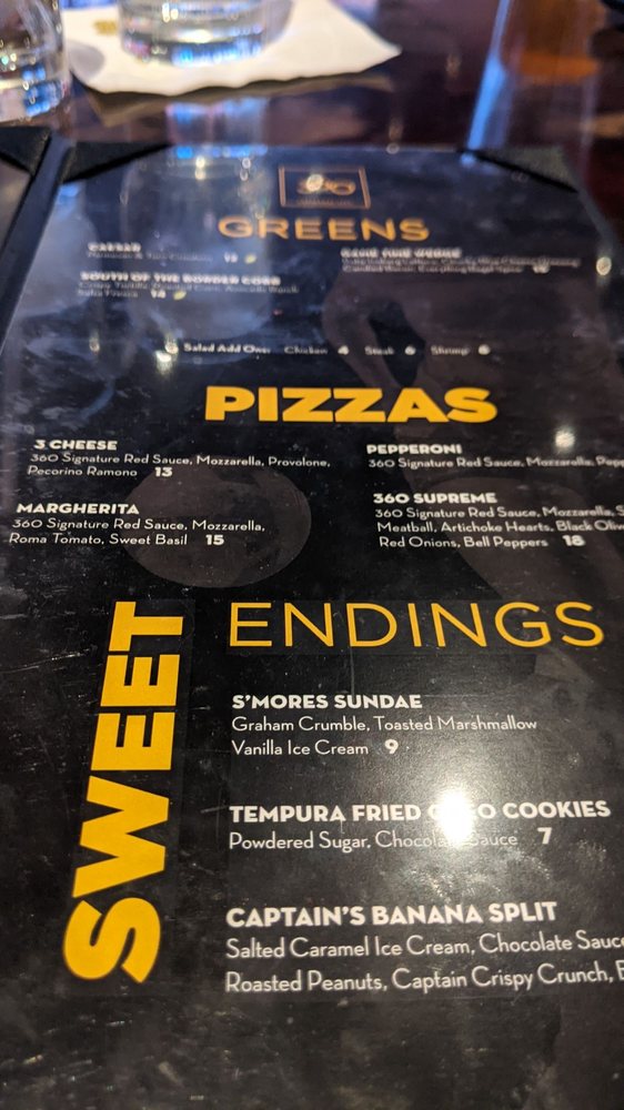 And don’t miss the creative sweet endings, like the indulgent Captain's Banana Split or the unique Tempura Fried Oreo Cookies, both sure to delight your palate. With attentive service and a spirited atmosphere, 360 Sports Cathedral City guarantees a memorable dining experience that transcends typical sports bar fare.